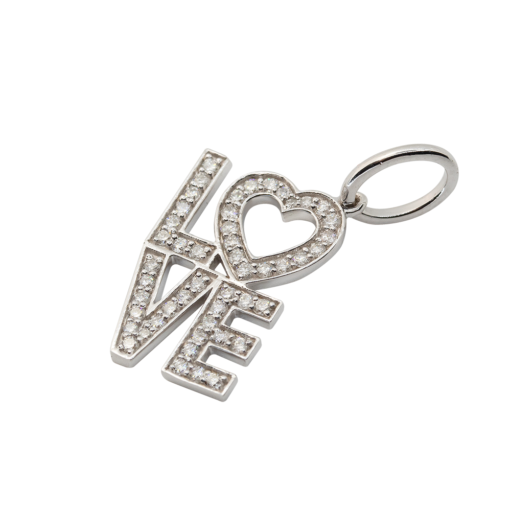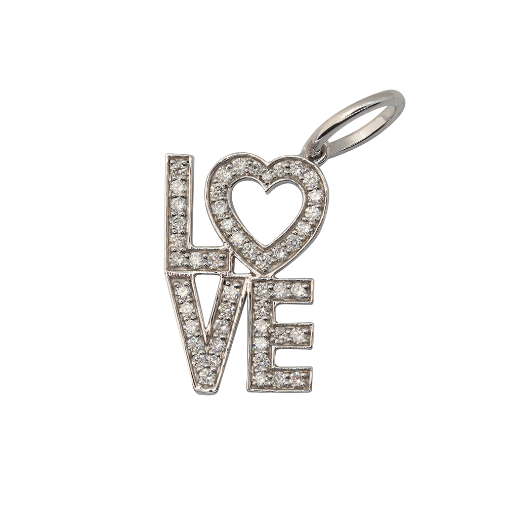 'LOVE' DIA Pendant: 0.34 CTS, 14K WG, 1.28 GRMS