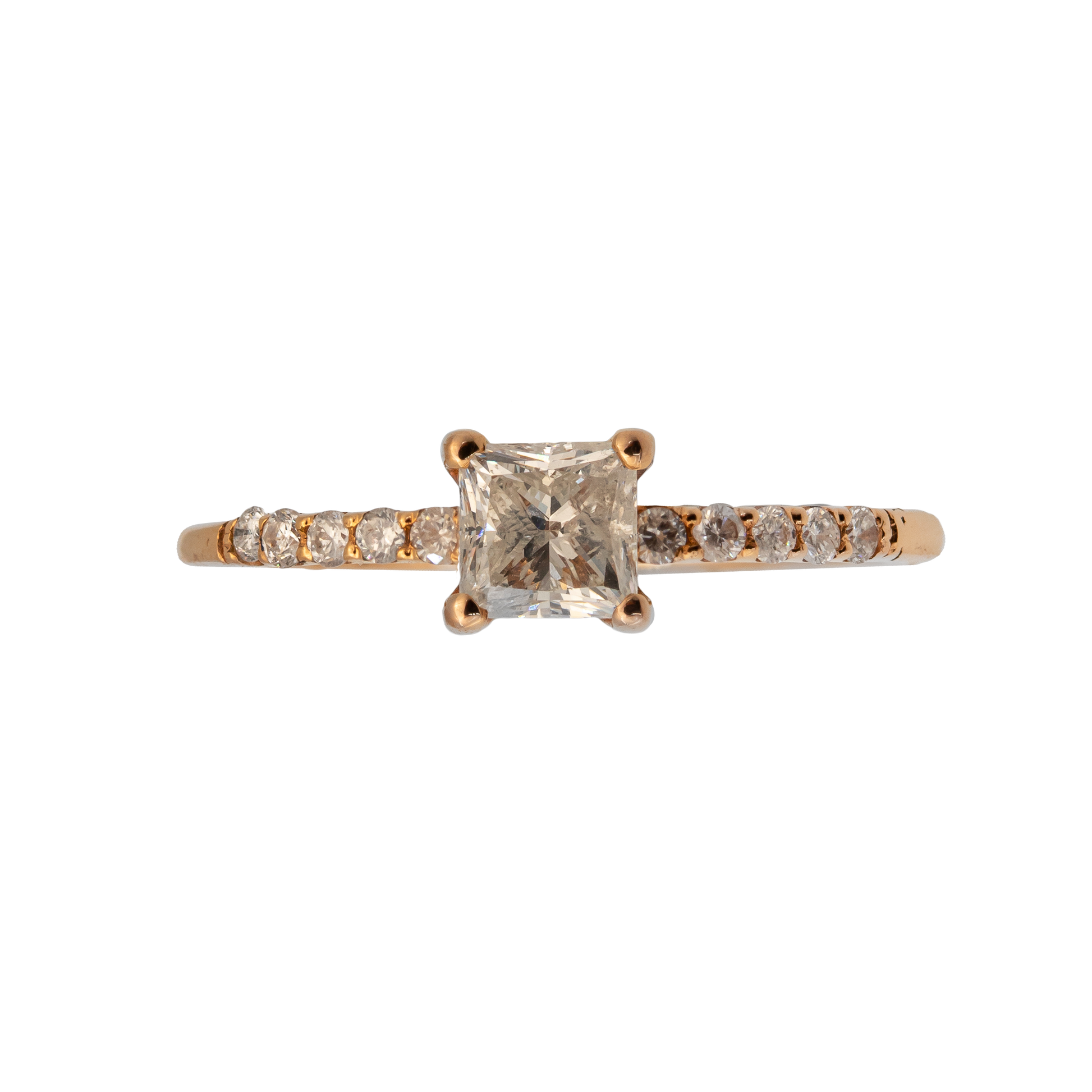 Princess Cut: 0.50 carats, Rose Gold ring w/ Side Stones