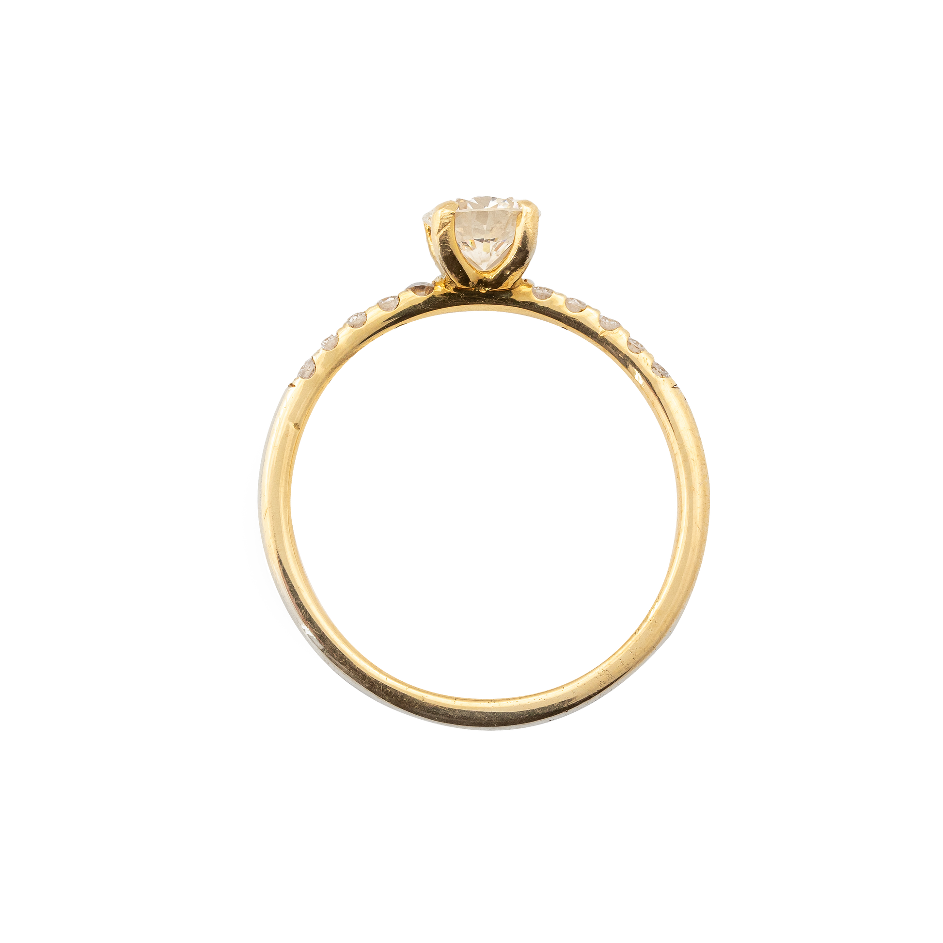 PRINCESS CUT DIA w/ side stones: PC: 0.50 CTS/01, SIDE: 0.13 CTS/10, 18K TG, 2.2 GRMS