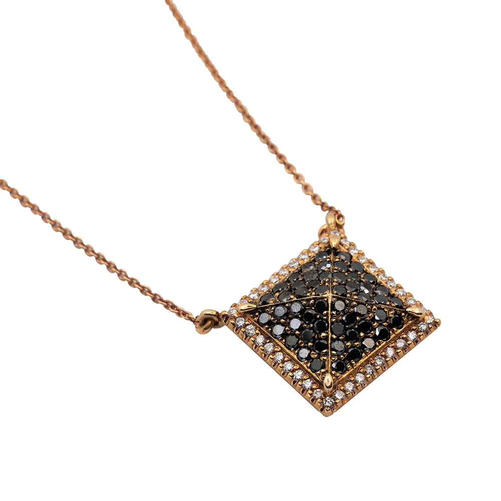 PENDANT w/ CHAIN: BLACK DIA: 1.05CTS, RD: 0.24CTS, 14K RG