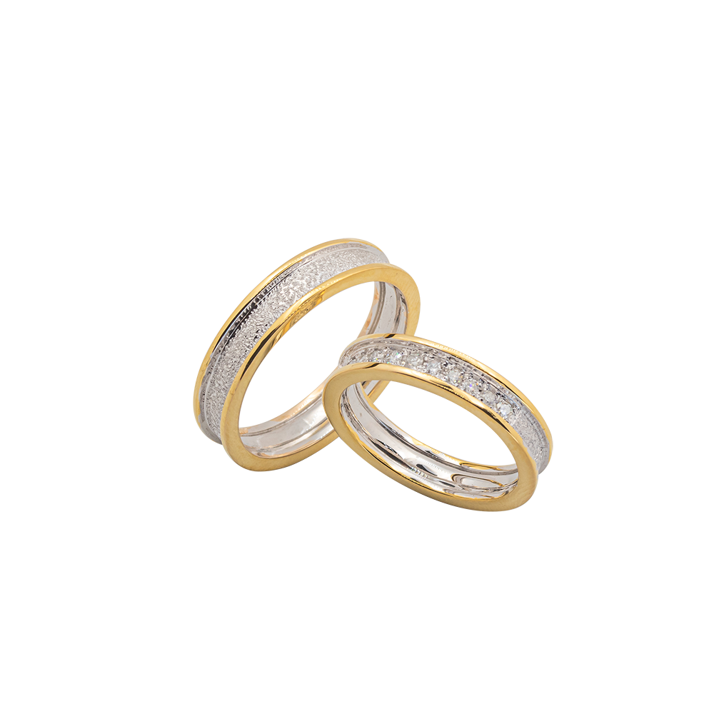 WEDDING RINGS: 0.016CTS/3, 14K YG/WG, 8.56 GRMS
