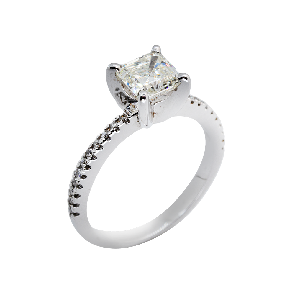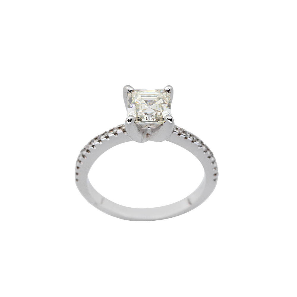 SOLO: 1.14 CTS, SIDE: 0.20 CTS, 14K WG, 3.5 GRMS