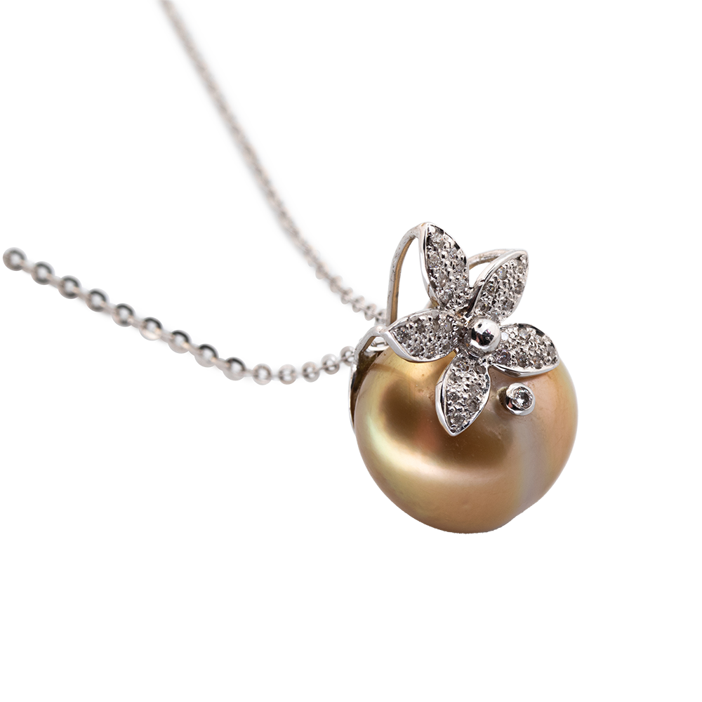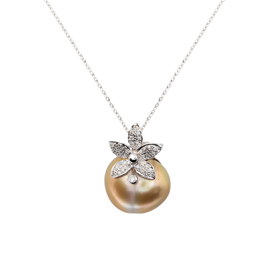 Heart Shape South Sea Pearl w/ DIA: 0.17 CTS, 14K WG