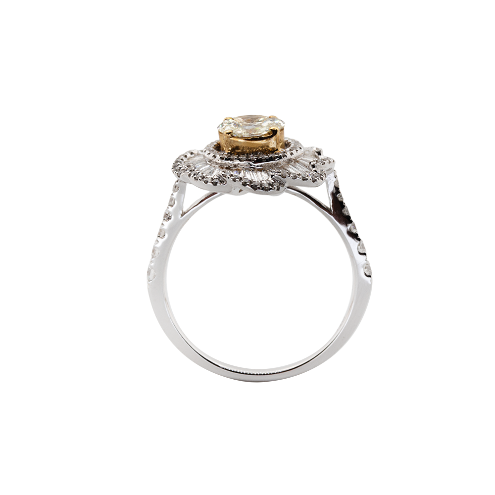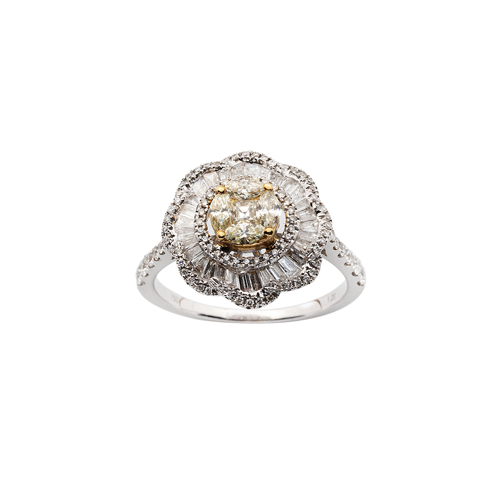 FLOWER SHAPED DIA RING: 1.20 CTS, 18K WG, 4.0 GRMS
