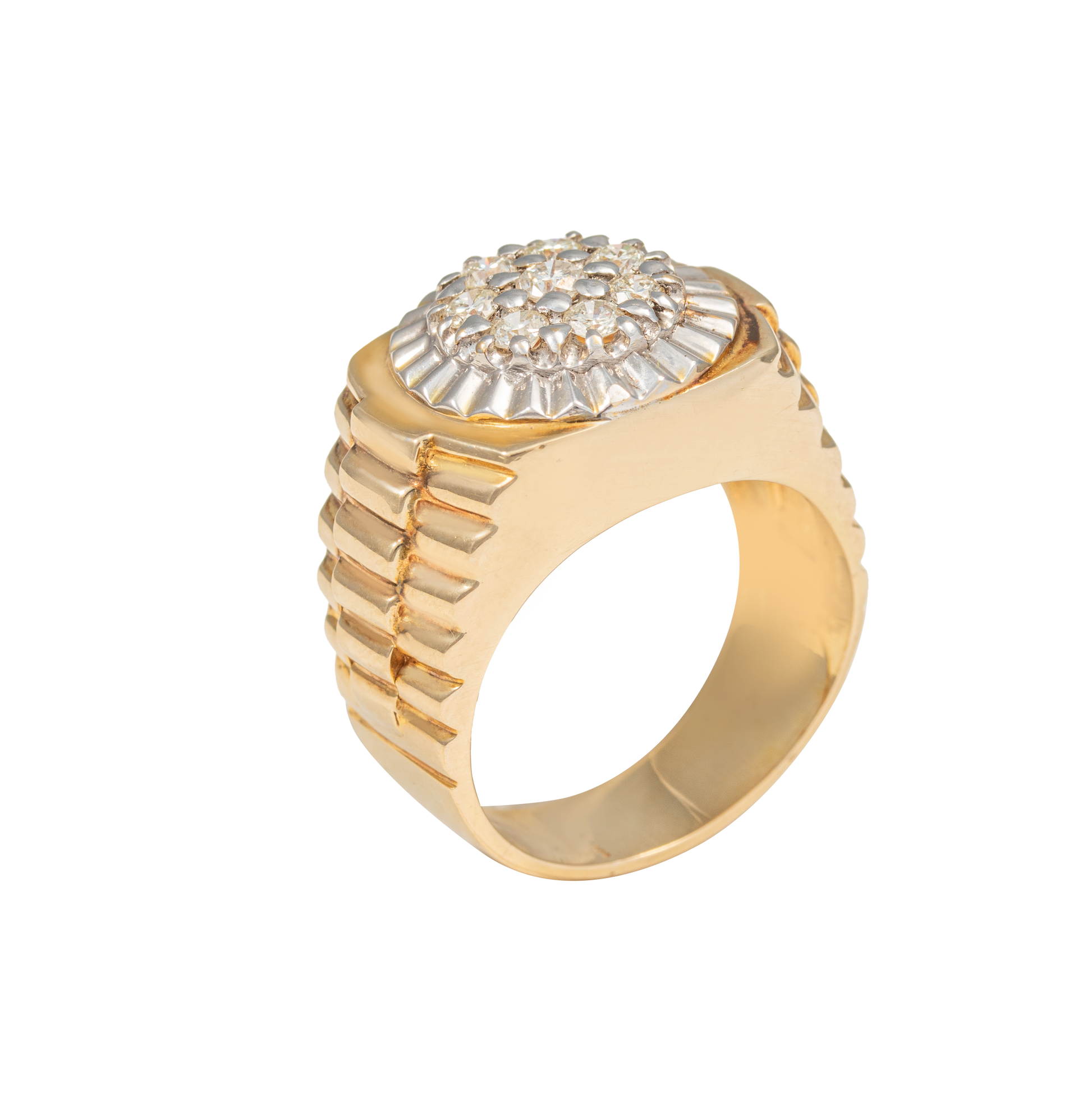 Men's Ring: 0.57cts/8pcs, 14K Yellow Gold, 12.2 GRMS