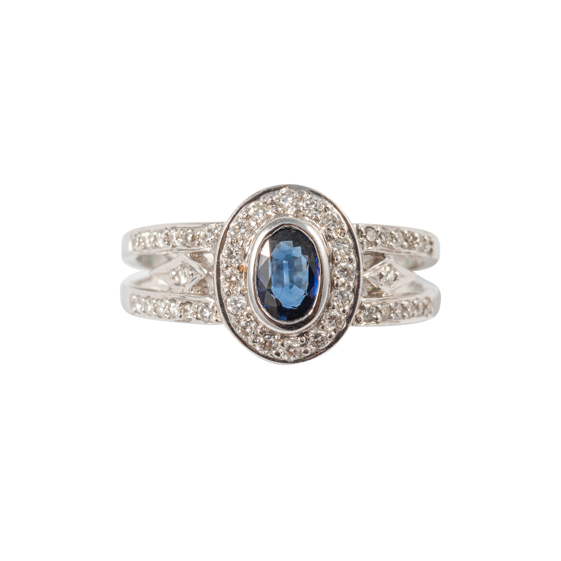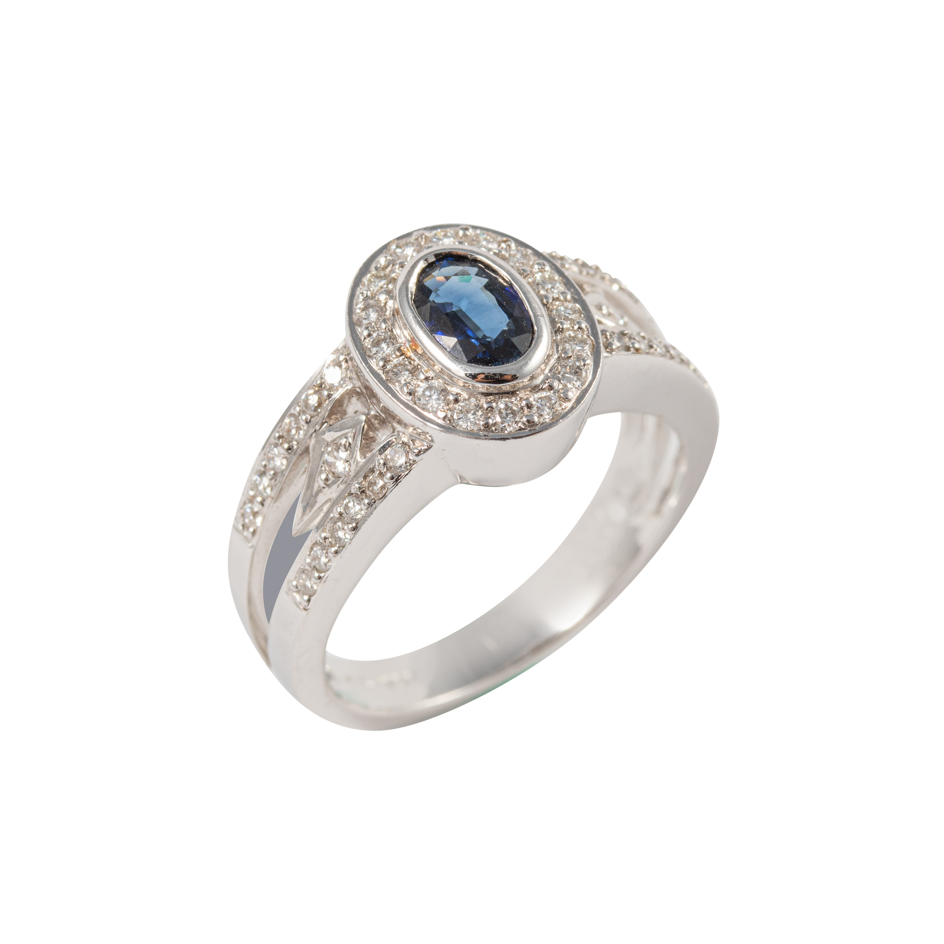(OVAL SAP): 0.56cts/1pcs, RD: 0.35cts/42pcs, 18K WG, 6.38 GRMS