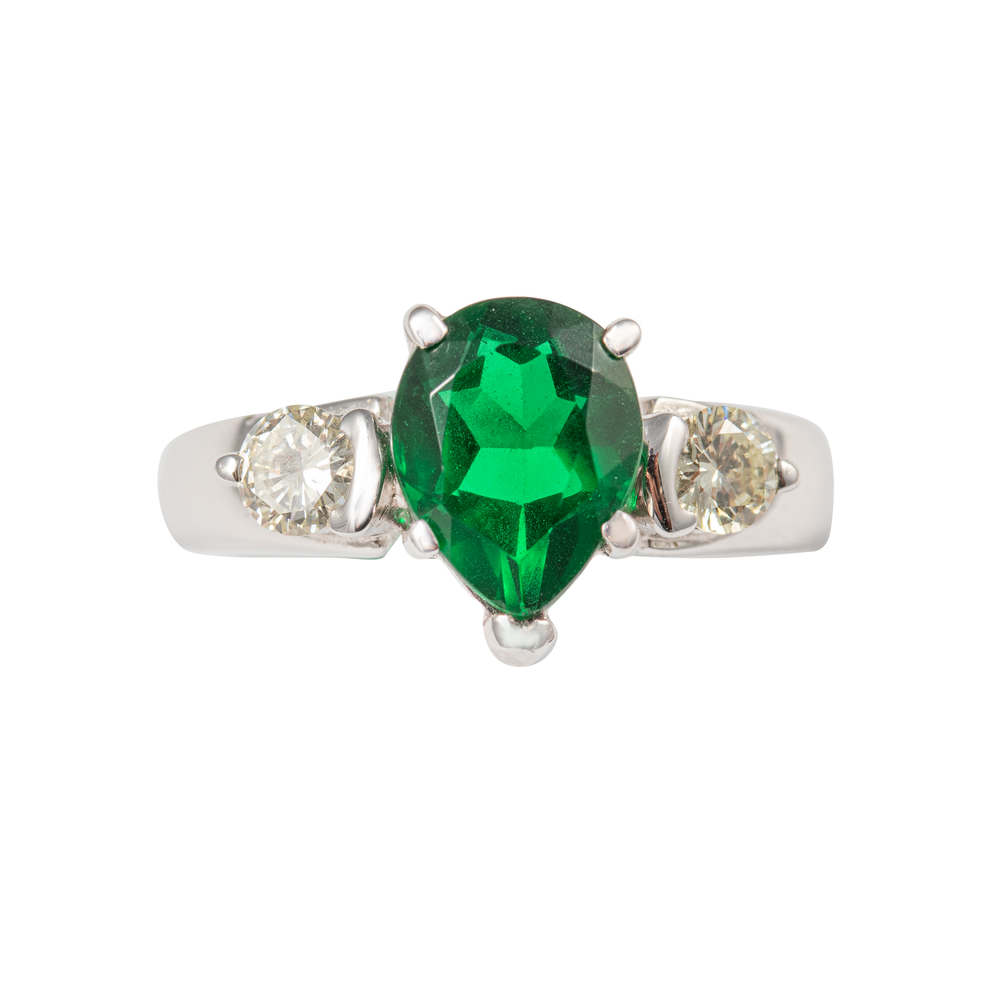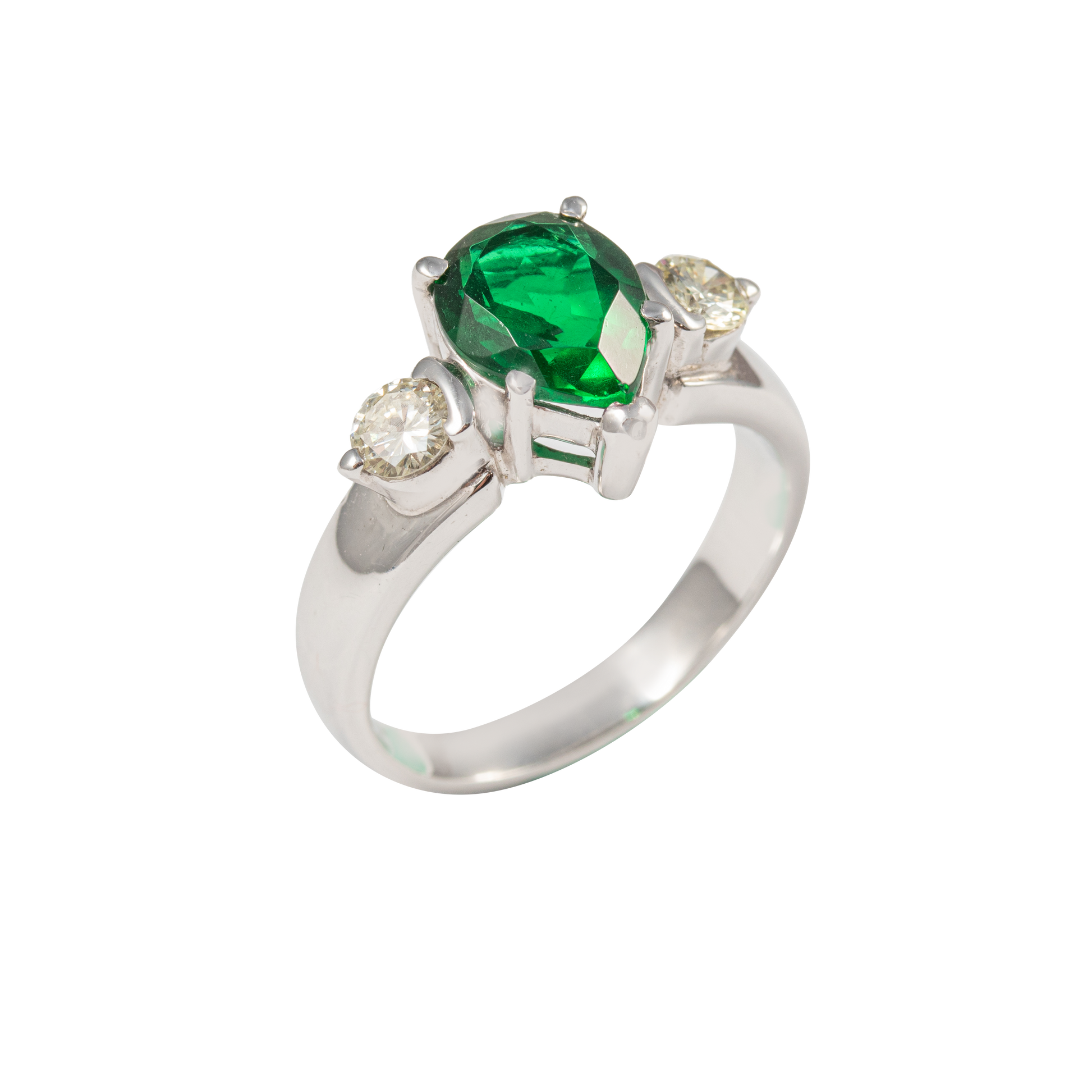 (GREEN EM): 1.65cts/1pcs, 0.40cts/2pcs, 14K WG, 5.3 GRMS