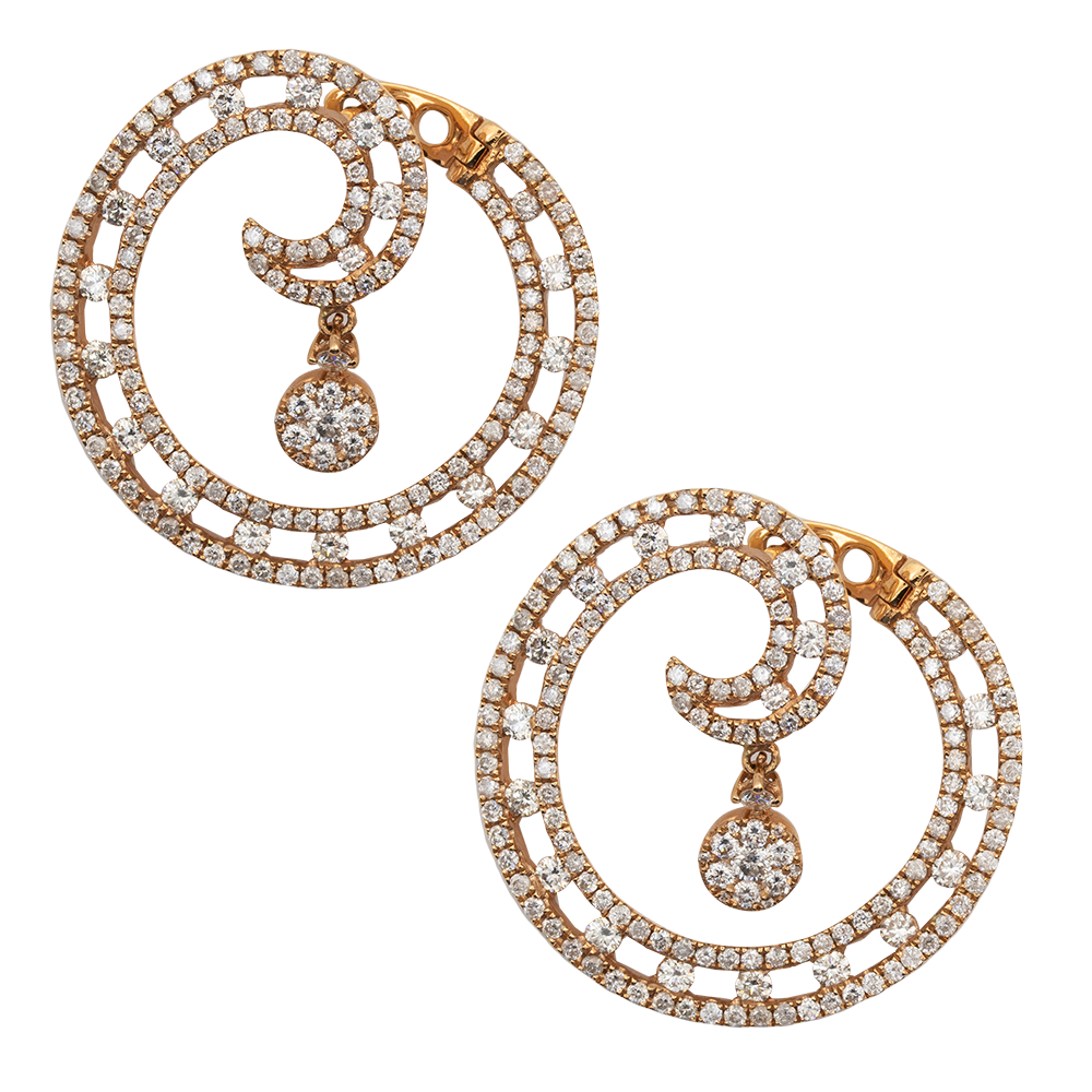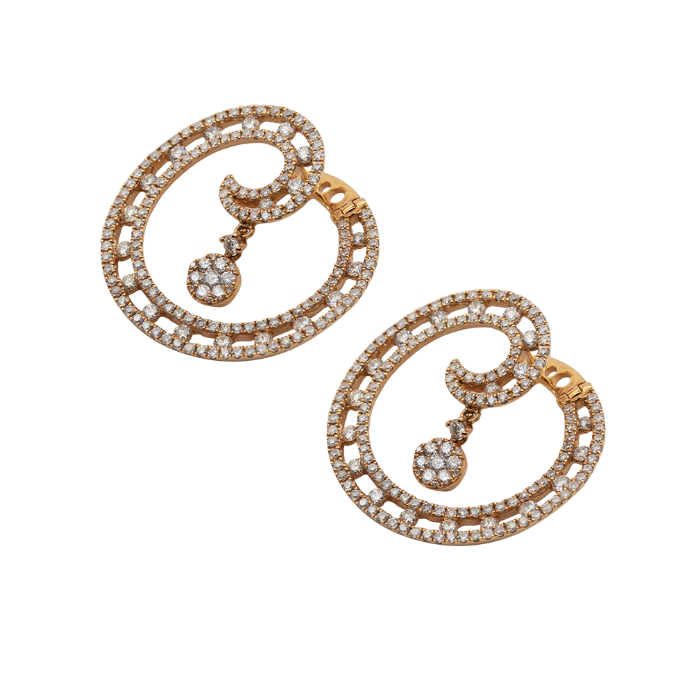 DIA SWIRL EARRING: RD: 2.73CTS/330, RG 18K, 9.56 GRMS