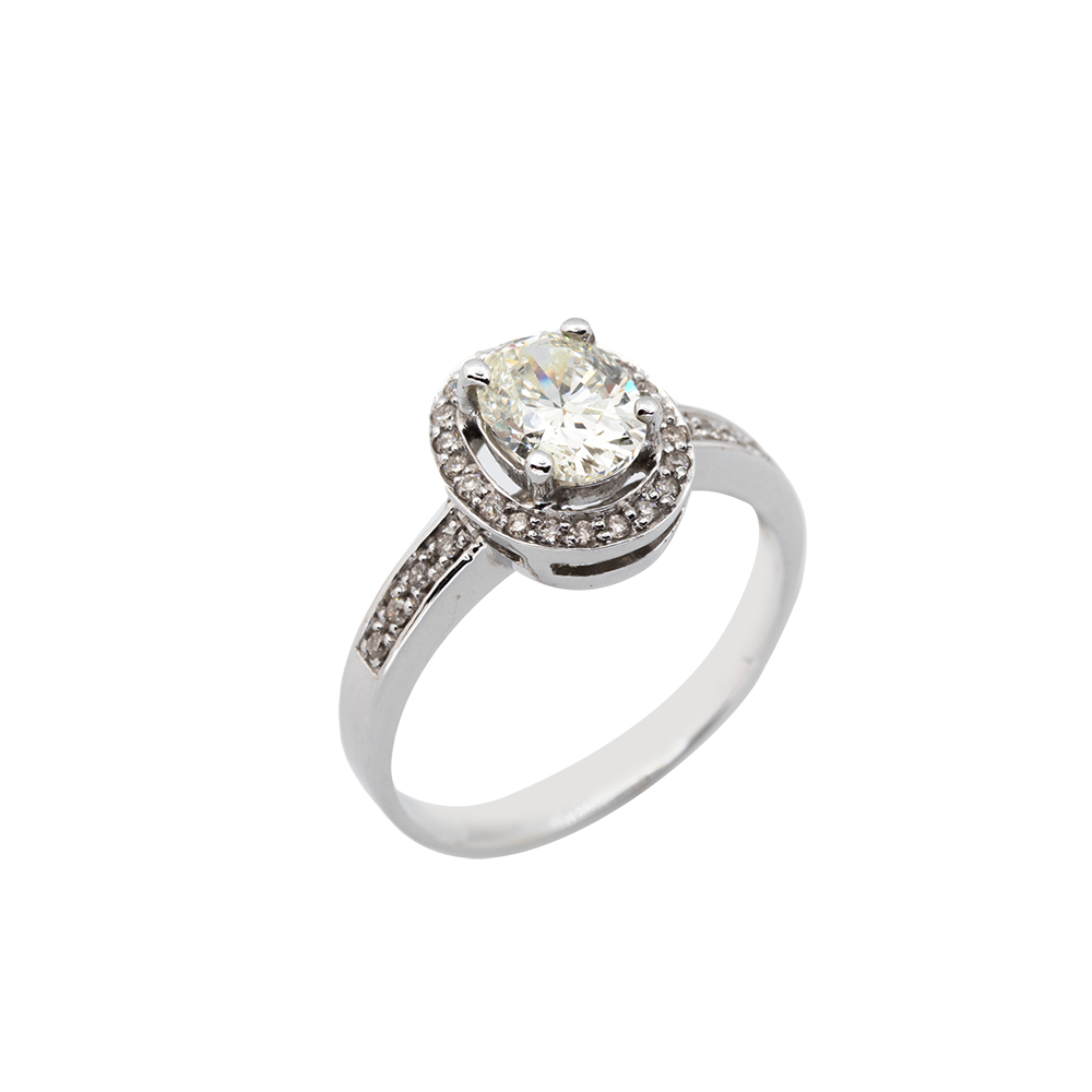 SOLO: 1.01 CTS, SIDE: 0.15 CTS, 14K WG, 2.8 GRMS