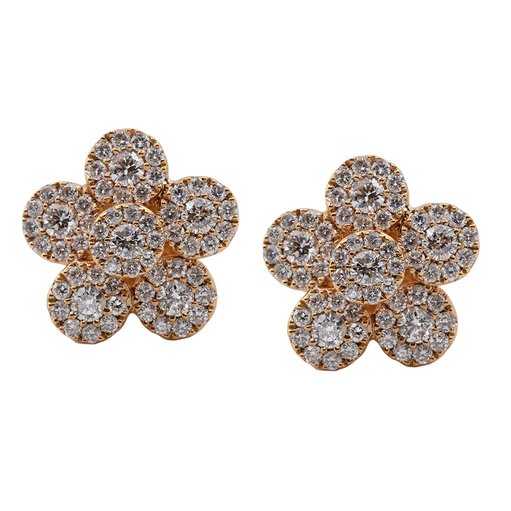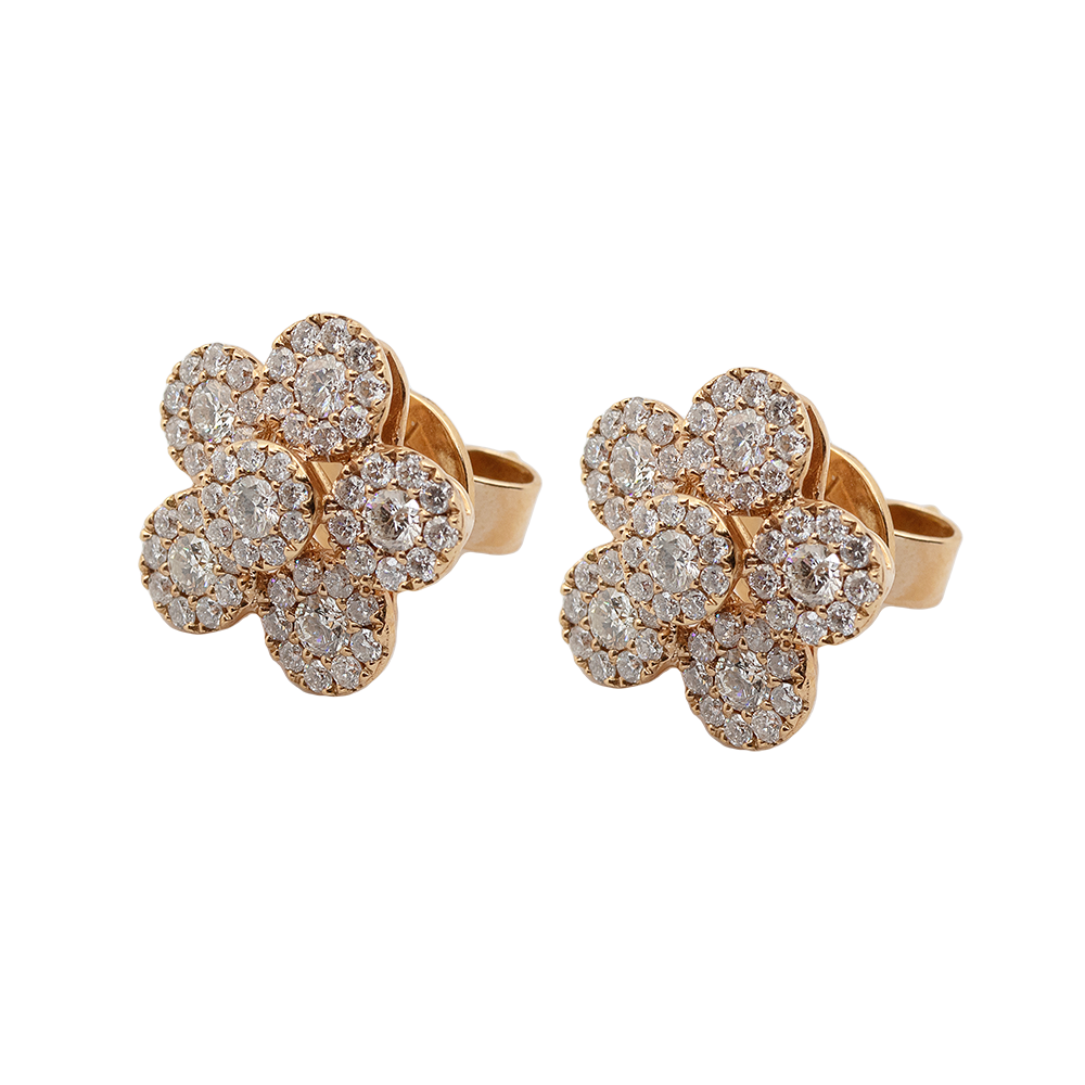 FLORAL DIA EARRING: RD: 1.75 CTS/120, 18K RG, 5.92 GRMS