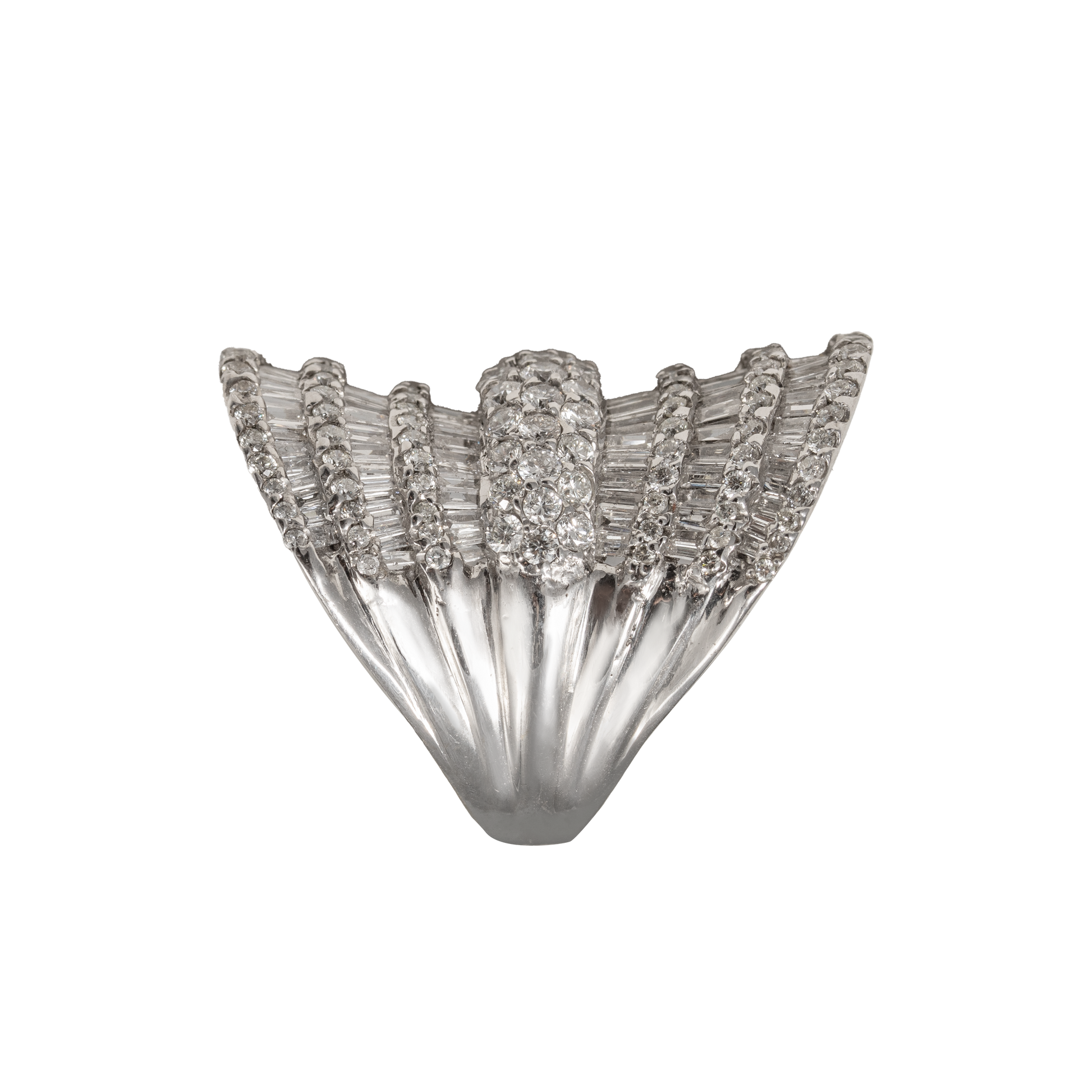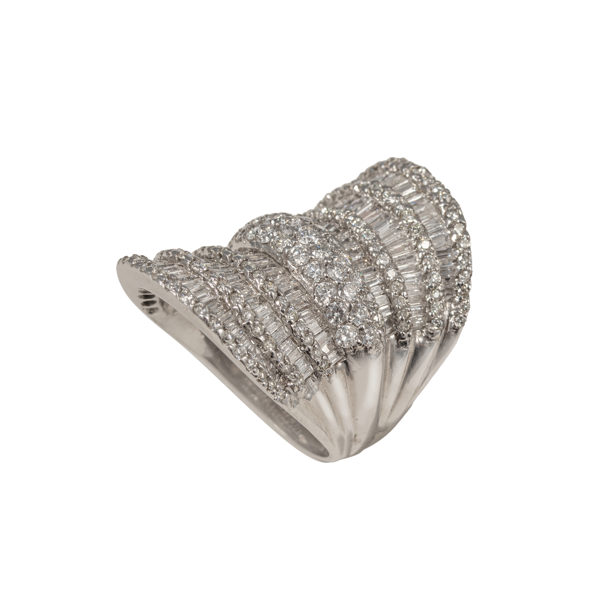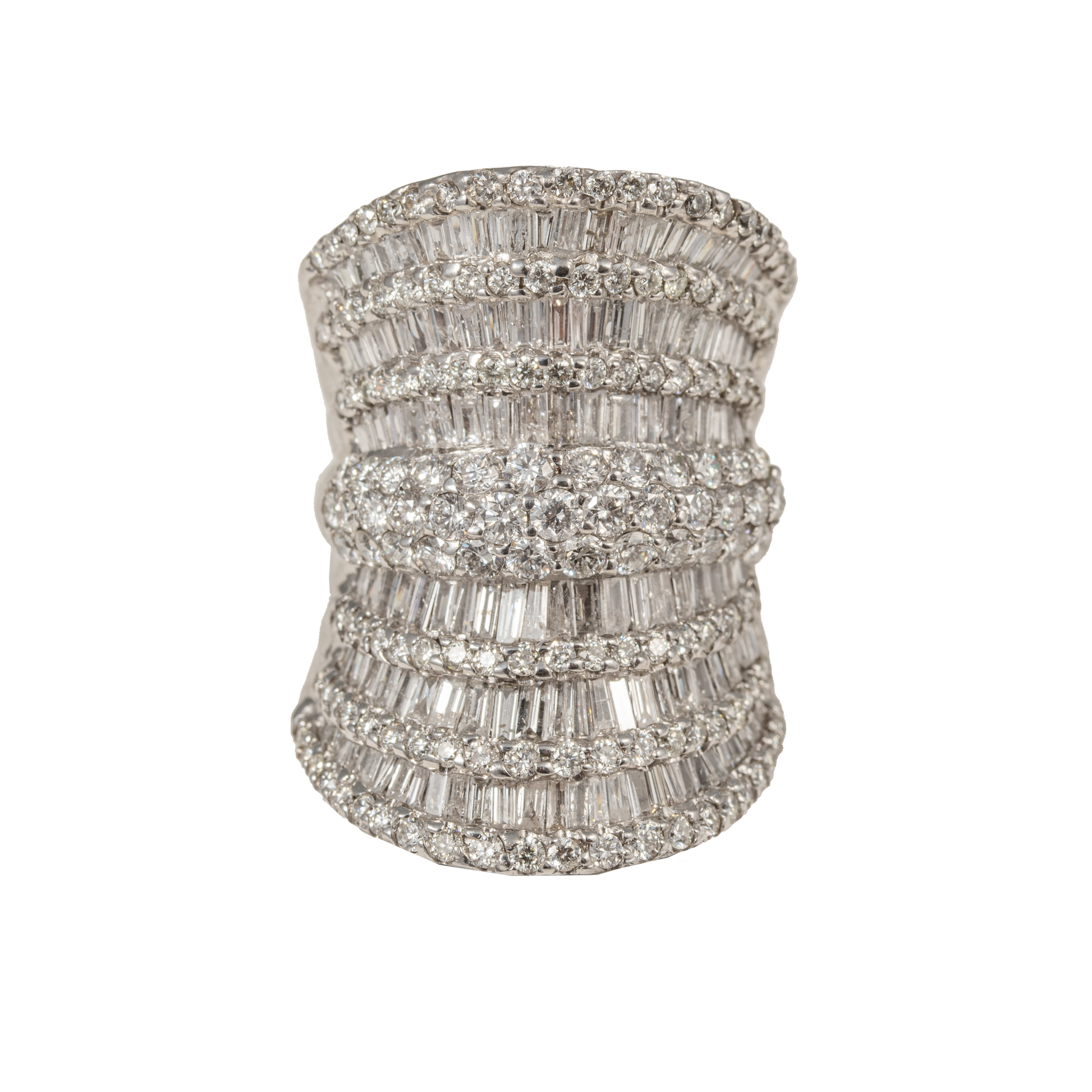 Round and Baguette Diamond Ring, 18K WG, 10.3 GRMS
