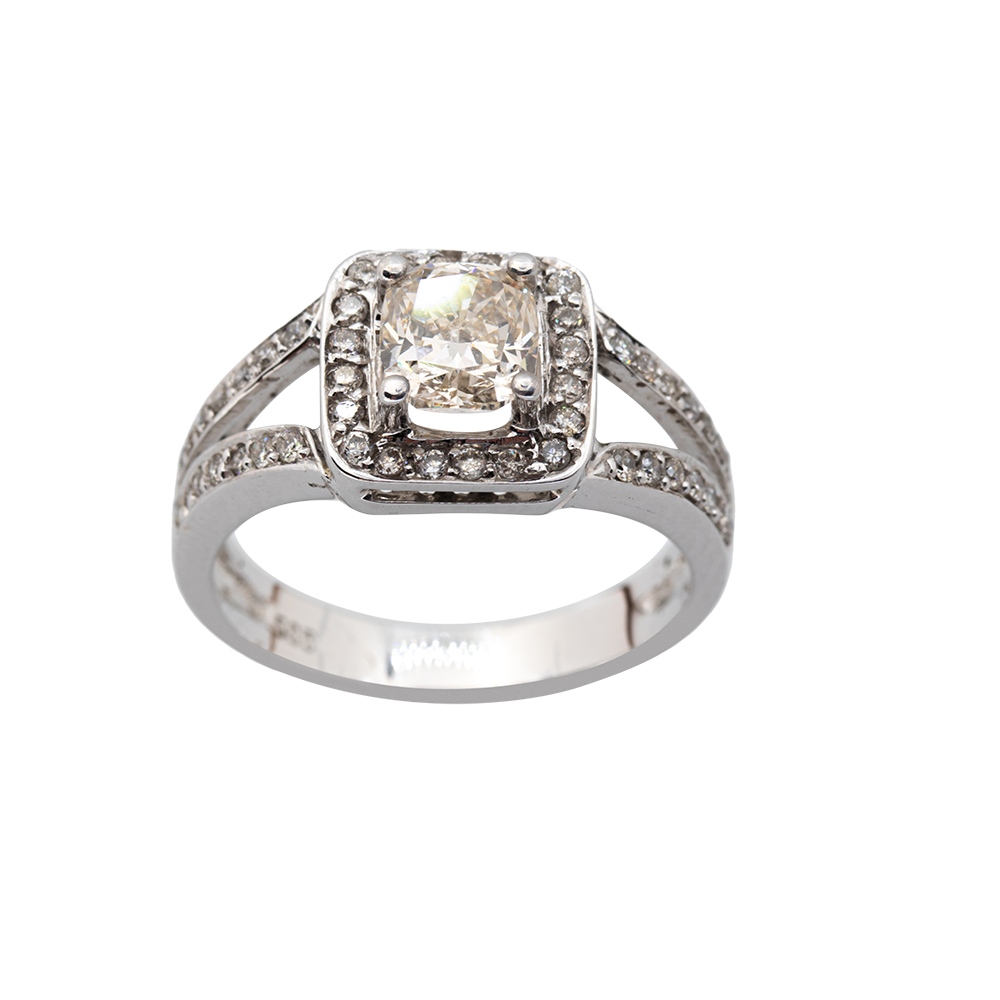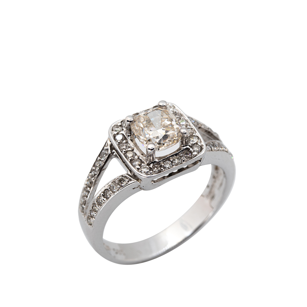 SOLO: 1.01 CTS, SIDE: 0.50 CTS, 18K WG, 6.14 GRMS