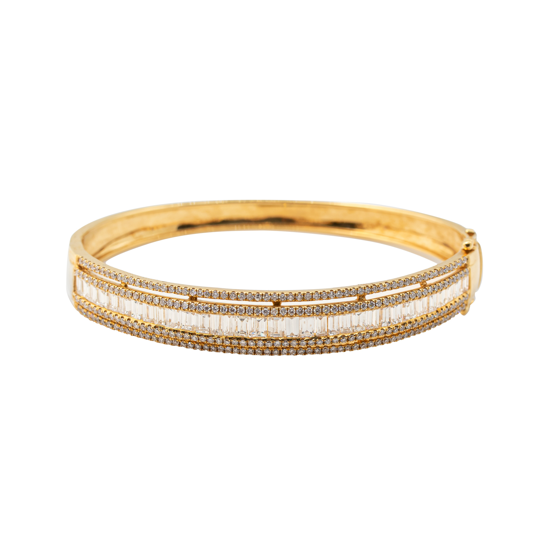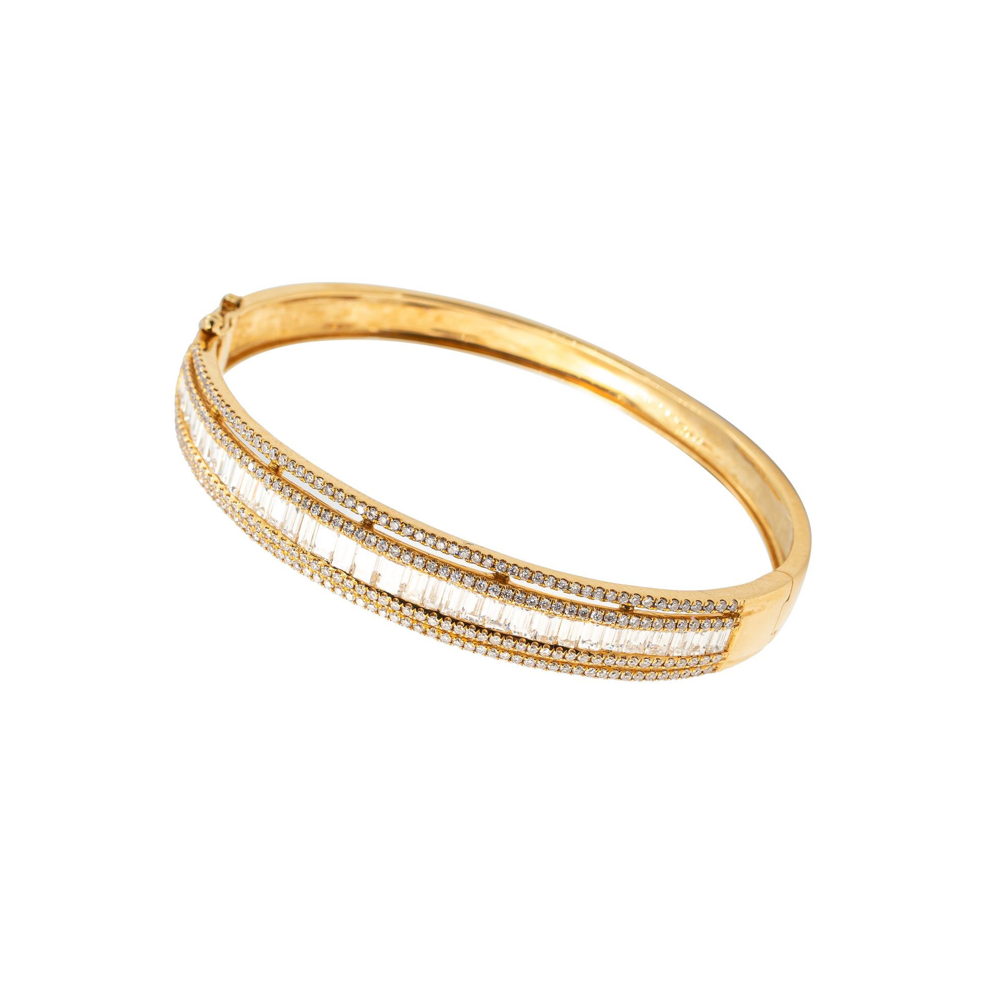 DIAMOND BANGLE: BAGUETTE DIA: 3.55 CTS/32pcs, ROUND DIA: 1.34 CTS/236, 18K YG, 21.32 GRMS
