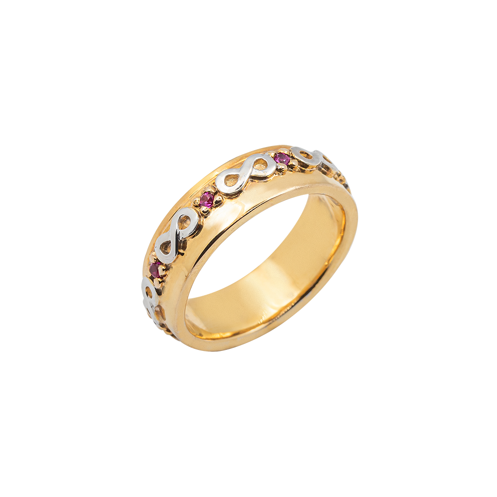 WEDDING RINGS: RUBY: 0.60 CTS/06, 14K YG/WG, 16.2 GRMS